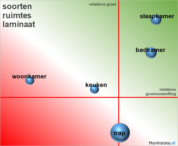 De badkamer en de slaapkamer hebben een sterke uitgangspositie; zowel de relatieve groei als de relatieve groeiversnelling is voor deze ruimtes relatief sterk van de onderscheiden ruimtes.