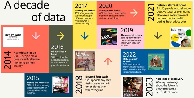 Voor diepgaander onderzoek ging het onderzoeksteam het afgelopen decennium bij duizenden mensen thuis langs om te ontdekken hoe het leven er binnenshuis echt aan toegaat. Het Ikea Life at Home Report is uitgegroeid tot een van de grootste studies ter wereld over het leven thuis.