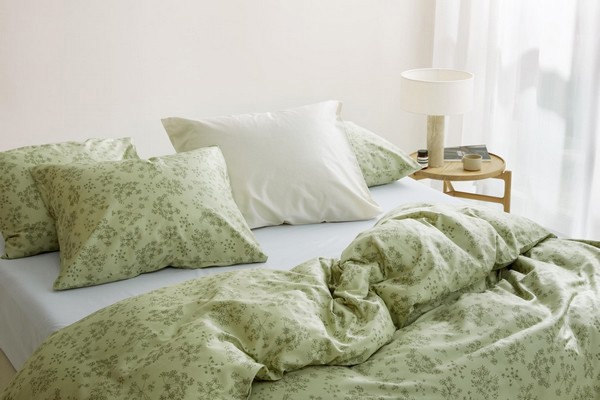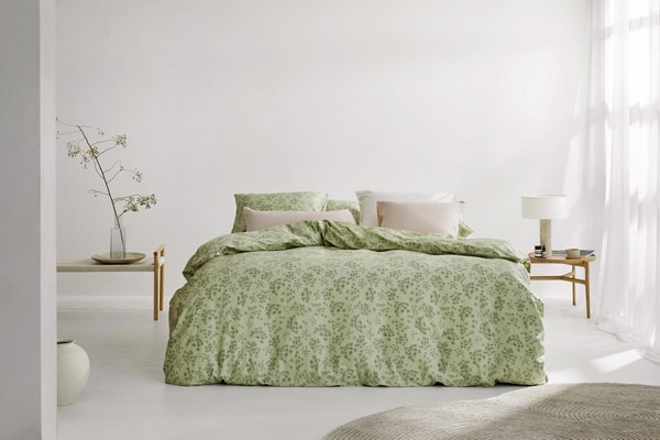 "Slaap onder een print van wilde schermbloemen uit de nieuwe Bloom-collectie, ontworpen door Maartje van den Noort. Yumeko en Maartje delen niet alleen een passie voor de natuur, maar streven ook naar het creëren van een kalme sfeer. "Ik zoek rust in mijn tekeningen", deelt Maartje. Voor deze collectie heeft ze dit streven vertaald naar een rustgevende print met elegante vlierbloesems.