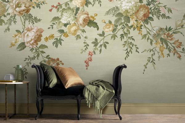 Het waren de werken van deze Meesters die als inspiratie dienden voor het fotobehang “Hague Fleurs“ van Graham & Brown. Met dit fotobehang realiseer je een groots interieurstatement in de woonkamer, hal of in de slaapkamer. De ruimte wordt omgetoverd tot een luxueuze oase. Guirlandes van grote bloesems hangen vanaf de bovenkant van het ontwerp naar beneden en maken dat je vol verwondering omhoogkijkt.