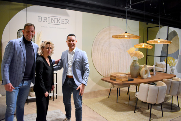 Brinker zit in ‘the flow’. De vloerkledenspecialist, die in de nabije toekomst ook een rol van betekenis wil gaan spelen met meubelen, sleepte tijdens de Voorjaarsvakdagen de Beste Social Media-award in de wacht. Deze onderscheiding, die directielid Michael Bonouvrie uit handen van Edwin Loeff ontving (zie foto rechts), komt voor een groot deel op het conto van Sagitta Tobé, die een half jaar geleden het team kwam versterken. Brinker had sinds half december een aftelcampagne richting de beursdagen op De Woonindustrie, waarbij telkens een ander vloerkleed werd getoond. "Tot voor kort waren we bij Brinker niet erg actief op sociale media, omdat we ons eerst wilden concentreren op het perfectioneren van onze collectie. Nu is die echter helemaal klaar en staat als een huis," vertelt Michael in de trendy ingerichte stand op De Woonindustrie, terwijl bezoekers zich vergapen aan de nieuwe collectie.