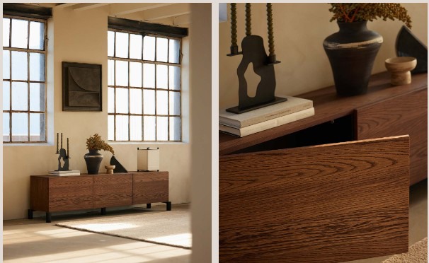 Deze veelzijdige kast is perfect voor het opbergen van al je favoriete items, als TV standaard te gebruiken of als podium voor mooie kunstwerken. Ambachtelijk vervaardigd door lokale vakmensen in de buurt van Amsterdam, is de kast gemaakt van gerecycled houtmateriaal en afgewerkt met een handbewerkte eiken fineerlaag met een lichte of donkere afwerking. Kies uit stijlvolle metalen pootjes, beschikbaar in zwart en zand, of monteer de kast aan de muur voor een zwevend effect. De Kast °01 komt in drie verschillende maten, waardoor deze gemakkelijk aan te passen is aan jouw interieur.