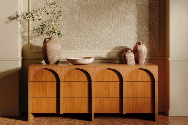In het hart van de Hawaïaanse archipel, op het bruisende eiland O'ahu, is de palmboom heer en meester. Arte vindt inspiratie in de weelderige vegetatie en parelwitte stranden van Kailua en verweeft het in de gelijknamige muurbekleding. Wuivende palmen worden ingelegd met rotan op een achtergrond van bark cloth: een vezelachtige doek vervaardigd van de schors van vijgenbomen. Het realistische Kailua dessin creëert een haast tastbare illusie op de muur, alsof je midden in de palmboomgaard wandelt. Kailua is verkrijgbaar in acht kleurvariaties.