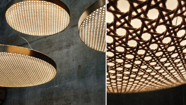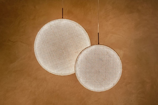 Dit schijfvormige armatuur is verkrijgbaar in drie formaten: 400 mm, 600 mm en 800 mm, en voorziet in verschillende verlichtingsbehoeften en ruimtelijke vereisten. De horizontale versie zorgt voor een strak en modern tintje, perfect om boven tafels te hangen, terwijl de verticale montageoptie een unieke twist geeft aan muren en gangen. Emanuelle is vervaardigd met nauwgezette aandacht voor detail en heeft een opvallend rotanmotief dat beide helften van de schijf siert.