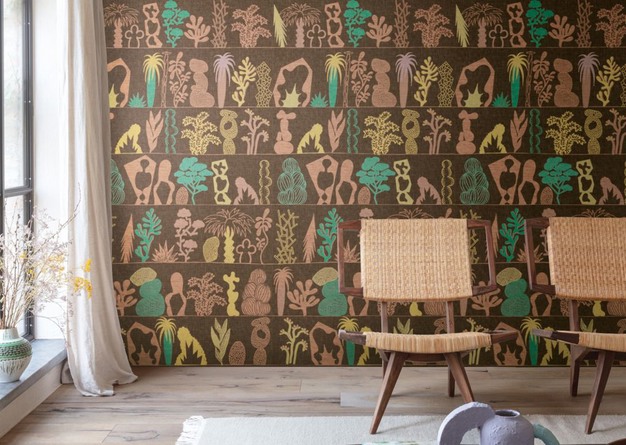 "Een opkomende trend is behang met geometrische Afrikaanse patronen in warme oker, paarse en groene kleurtinten. Deze levendige en cultureel geïnspireerde ontwerpen brengen een vleugje exotisme en levendigheid in elk interieur, waarbij traditionele motieven worden gecombineerd met eigentijdse kleurenschema's voor een unieke uitstraling."