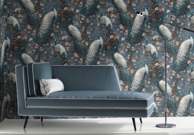 "De Play of Light collectie omvat verleidelijke ontwerpen met pauwen, vlierbloemen en weelderig gebladerte. PAVO straalt koninklijke gratie uit, terwijl PURITY zwevende vlierbloesems in ochtenddauw toont. DELICIOSA benadrukt lichteffecten met tropisch gebladerte. Een zorgvuldig kleurenpalet creëert een stijlvolle sfeer voor een huis vol elegantie en moderne esthetiek, veranderend in een oase voor geest, lichaam en ziel, met gedempte maar levendige kleuren en intrigerende licht- en schaduweffecten."