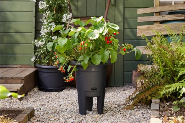 - Zet je aardbeiplant hoog. De plantjes gaan hangen en het is beter als ze niet de grond raken. In de speciaal ontworpen elho aardbeien pot staan ze hoog en droog.