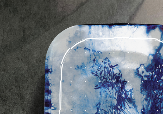 De basis van Re-Framed is een prachtige serie keramische wandpanelen. Met deze serie herdefinieert Royal Delft de traditionele wandborden. In dit project wordt het erfgoed gecombineerd met eigentijdse kunst; met ontwerpen van zowel onze eigen meester-schilders als externe kunstenaars en designers. Bij het debuut van deze collectie is de eer aan designer Bert Timmermans van Workingbert. Binnen deze samenwerking geeft Workingbert een eigentijdse kijk op bloem- en bladmotieven. In een proces van het persen en stomen van gestapelde, met de hand geplukte wilde en gecultiveerde planten in roestwater, drukken de planten zichzelf af op papier. Dit resulteert in gedetailleerde beelden met een schilderkunstige kwaliteit en in toevallige vlekken van de vloeistof waarin ze worden gestoomd. Het resultaat: prachtige keramische wandpanelen met de kenmerkende florale prints van Workingbert, uitgevoerd in kleurstellingen die een knipoog geven naar het Delfts Blauw van Royal Delft sinds de 17de eeuw en een link leggen met de bouwkeramische periode van Royal Delft van begin 1900.