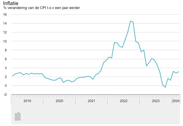 Het CBS publiceert twee verschillende cijfers voor inflatie. Een op basis van de consumentenprijsindex (CPI), en een op basis van de Europees geharmoniseerde consumentenprijsindex (HICP). De snelle raming van de inflatie in Nederland volgens de HICP was in maart 3,1 procent. In februari was de inflatie 2,7 procent.