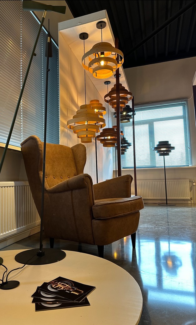 In de afgelopen weken is er door het team van ETH hard gewerkt om de showroom uit te breiden. Daarvoor zijn de kantoren naar elders in het pand verhuisd. De rechtervleugel van het gebouw is één toonzaal geworden, vanaf het nulpunt opgebouwd en uitgegroeid naar zo'n 200 vierkante meter, waardoor de hele collectie kan worden getoond. "Wat we als ETH nieuw op de markt brengen, hangt of staat hier gelijk. Voorheen deden we dat op beurzen. Ook elders in ons pand hangen nu lampen, zodat die in het echt kunnen worden bewonderd. Ook buiten de huisshow (op afspraak) om", voegt Matthijs er nog aan toe.