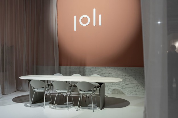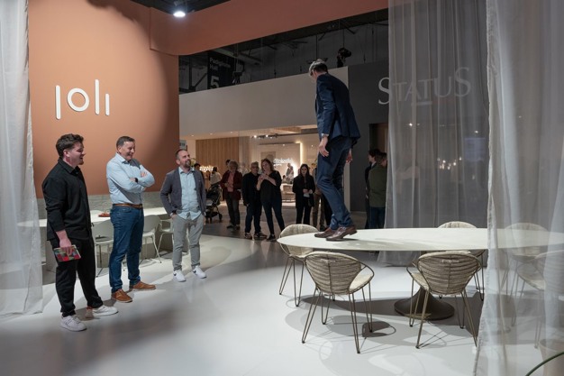 Wie tijdens de afgelopen editie van Salone del Mobile.Milano langs de stand van Joli liep, keek waarschijnlijk raar op. Niet omdat de presentatie er gelikt uitzag, maar omdat general manager Bruno Coucke voortdurend op de tafel stond. Het was een grappig gezicht, met een serieuze boodschap. De stabiliteit van de Central Elyps Big-tafel werd namelijk gedemonstreerd. "En dat heeft veel enthousiaste reacties opgeleverd", zegt Bruno met een knipoog.