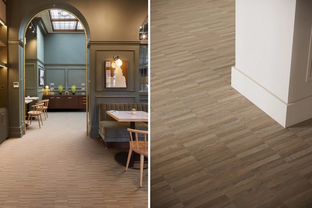 Op verzoek van interieurarchitecten is de tijdloze uitstraling van 'hoogkant parket' nu ook verkrijgbaar in PVC. Het Duitse vloerenmerk IPC is er in geslaagd om dit te bewerkstelligen en dat was nogal een technische uitdaging. Het heeft ruim twee jaar geduurd. Het streven was om het verschil niet te kunnen zien met echt hout.