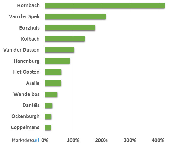 In het eerste kwartaal van het jaar 2024 prijkt Hornbach bovenaan de ranglijst van stijgers. De winkelformule Hornbach kende 423% meer groei dan het marktgemiddelde. De top-5 van sterkste groeiers qua populariteit wordt gecompleteerd door Tuincentrum Van der Spek, Tuincentrum Borghuis, Tuincentrum Kolbach en Tuincentrum Van der Dussen. Daarnaast laat nog een aantal tuincentra een flinke stijging zien in het eerste kwartaal van het jaar 2024. Bent u ook benieuwd naar de grootste verliezers qua ontwikkeling van het zoekvolume in de onderliggende periode en de exacte cijfers? U leest het in het Structuurrapport Tuincentra 2024.