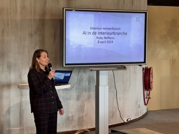 Het informele karakter van de lunch, gecombineerd met een doordachte tafelschikking die ervoor zorgde dat deelnemers met elkaar in contact kwamen, werd door de aanwezigen als verfrissend en plezierig ervaren. Ruby Nefkens' verhelderende uitleg over het gebruik van kunstmatige intelligentie in de interieurbranche werd met veel enthousiasme ontvangen.