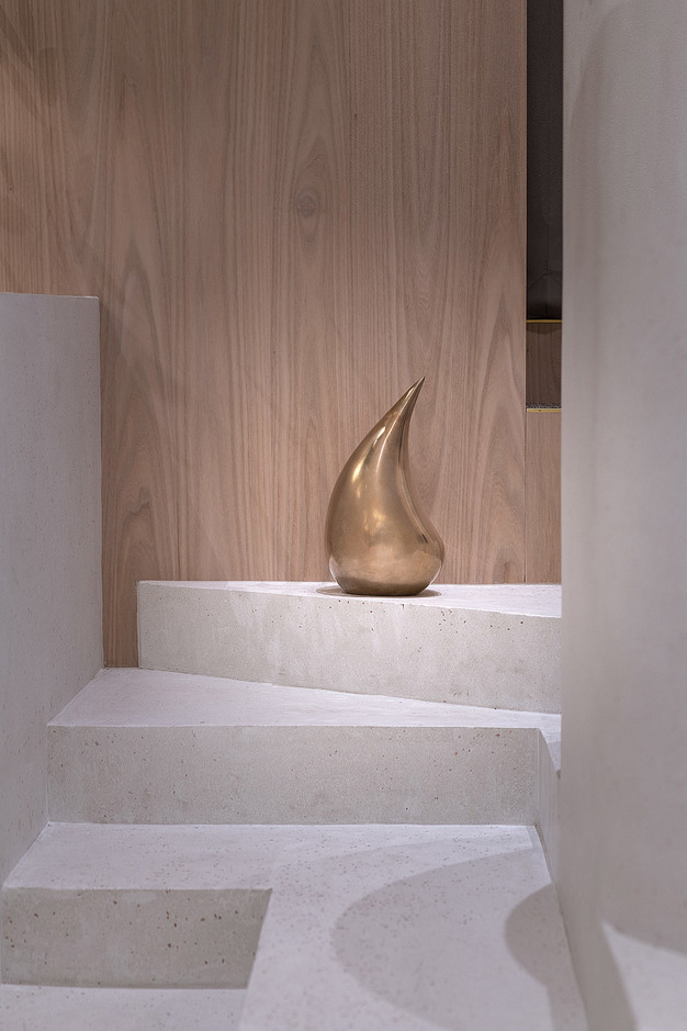 De sculpturen van Marc Caelenberghe zijn altijd diepgeworteld in zijn persoonlijke emotie. Hij maakte dit traanvormige kunstwerk om de essentie van het menselijk gevoel weer te geven, zowel verdriet als vreugde. Hij wil graag een gevoel van vrede overbrengen.