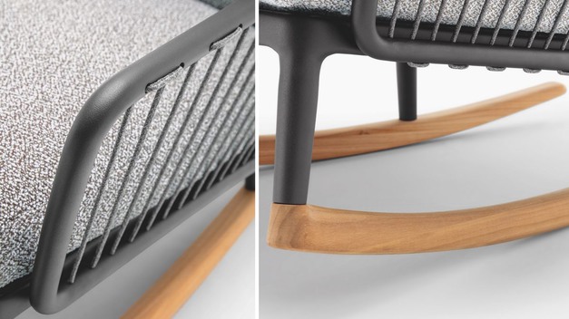 Schommelen in een schommelstoel is ultiem ontspannen. Dit was voor Rolf Benz de inspiratie voor de YOKO outdoor schommelstoel. Deze outdoor variant kenmerkt zich door een elegante look die wordt gecreƫerd door het aluminium frame dat verkrijgbaar is in antraciet of wit. Lopers van teakhout zorgen voor een aangenaam schommelgevoel. Het 'schommelgedeelte' is vervaardigd uit hoogwaardig Teak.