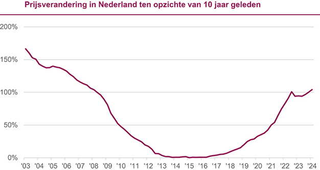 Landelijk nooit een prijsdaling over een tienjaarsperiode