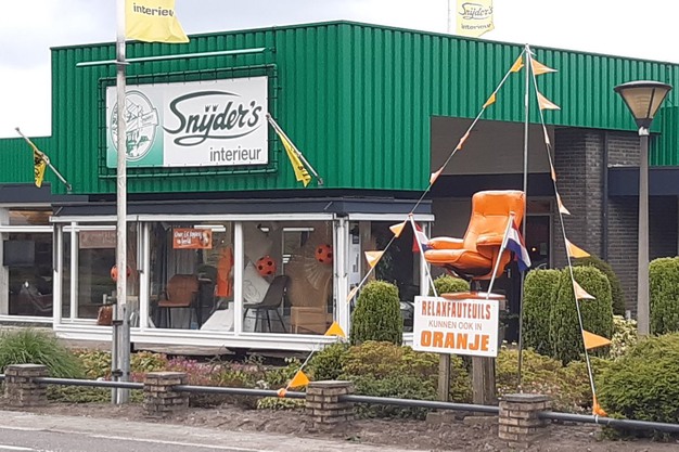 Ook Snijder's Interieur uit Smilde haakt in op de publiciteit van het Europese Kampioenschap voetbal. Zo is er tijdens he toernooi een grote oranje relaxstoel te zien op de winkel.