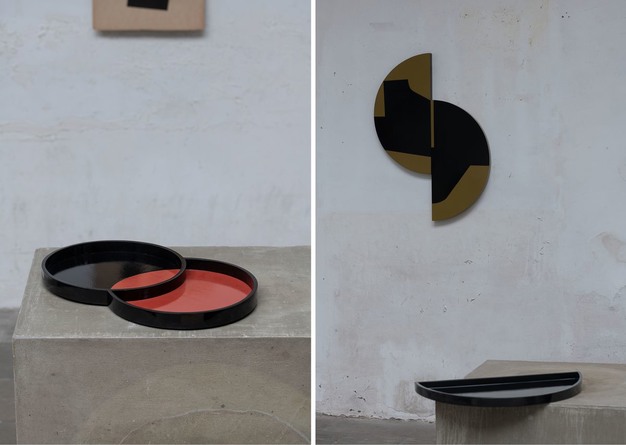De dienbladenfamilie transformeert het alledaagse houten dienblad tot een statement stuk. De primaire kleuren en geometrische vormen knipogen naar de beroemde Bauhausstijl, die voor Verhelst een belangrijke inspiratiebron is. De dienbladen Yo-yo en Cubit geven een trompe l'oeil effect. Met Endo creëer je je eigen kunstwerk aan de muur. De set van drie handgeschilderde dienbladen wordt geleverd met een bevestigingssysteem en een handleiding van de ontwerper, waarin wordt uitgelegd hoe je verschillende composities kunt maken.