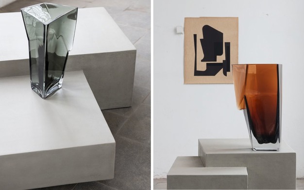 De Sculptural Confluence | deel 1 collectie bevat niet minder dan zestien opvallende vazen. Verhelst's diepe passie voor sculpturen komt tot uiting in intrigerende hoekige vormen, die hij eerst op ware grootte in karton maakte. De Bebop-vazen zijn gemaakt van keramiek en verkrijgbaar in twee glazuurkleuren. De Dunk-vazen zijn gemaakt van glas en zijn verkrijgbaar in zowel transparant als gekleurd glas.