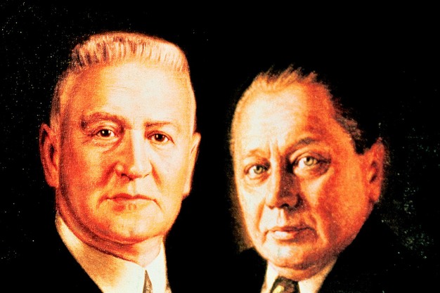Oprichting van de firma Miele & Cie. in 1899: Carl Miele senior (l.) en Reinhard Zinkann. Foto: Miele.