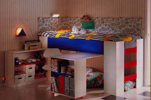 Oplossingen voor kleine ruimtes stonden centraal in de slaapkamers van de jaren 1990. Catalogi uit 1990 tonen mobiele opbergoplossingen voor groeiende kinderkamers.
