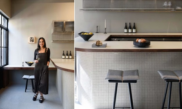 Nasiri's visie reikt verder dan de wijn en is ook terug te vinden in het interieur van de bar. Ze koos Studio AHEAD vanwege hun gedeelde toewijding aan het werken met kleinschalige, genuanceerde ambachtslieden en fabrikanten. "Ik wilde dat deze waarden zouden doorwerken in de wijn, het eten en het ontwerp," legt ze uit. Deze afstemming van waarden is duidelijk zichtbaar in elk aspect van het ontwerp van de bar.