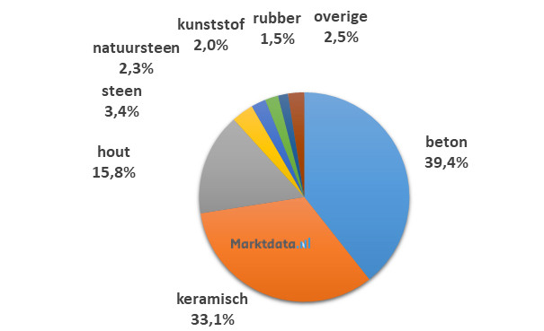 Ruim 39 van het zoekvolume met aanduiding van een soort materiaal heeft betrekking op beton. Op de tweede plaats staat keramisch met een aandeel van 33,1 procent in het zoekvolume. De nummer drie is hout, welke 15,8 procent van het zoekvolume vertegenwoordigt. De categorie "overige" bestaat onder meer uit granito, grind, leisteen, marmer en terrazzo.
