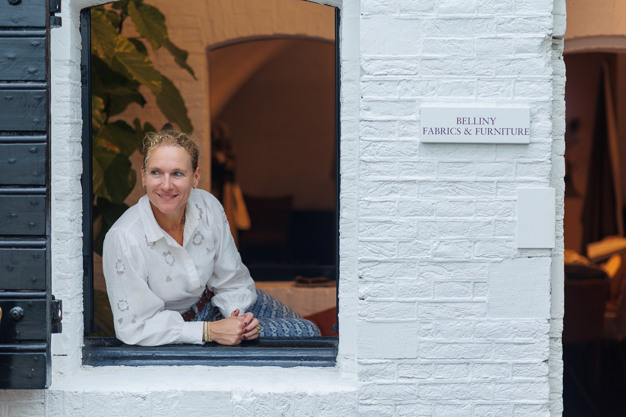 Claire Declemy van Belliny Fabrics in haar showroom in Naarden-vesting.