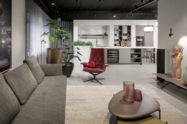 "Totaalconcept voor de moderne levensstijl Design for Living gaat verder dan traditioneel interieurontwerp. Het concept erkent dat de moderne levensstijl vraagt om een vloeiende overgang tussen verschillende leefruimtes. De keuken, vaak het hart van het huis, vloeit naadloos over in woonruimtes, ondersteund door zorgvuldig geselecteerde meubels, verlichting en accessoires", aldus SieMatic.