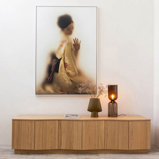 De nieuwe collectie wordt gepresenteerd in verschillende interieurstijlen zoals Eclectic, Bohemian en Japandi in ons Experience Center. Op de foto de nieuwe 'zigzag-kast'.