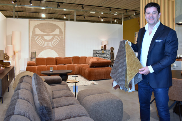 Een andere retailtrekker in de showroom van De Eekhoorn is MOJO. Een modulaire bank die in verschillende stoffen en kleuren verkrijgbaar is en die qua look en feel ontrend is. "Wellicht lopen we er nog iets mee voor op de interieurmarkt. Hij is ook goed geprijsd. Hiermee geven we de retailer een commerciële bank in handen die goed te verkopen is. Het is een modulaire bank, dus je kunt hem in verschillende combinaties aanbieden. In Parijs (op Maison&Objet, l.e.) werd hij ontzettend goed ontvangen. Vanaf oktober staat hij al in veel winkels."