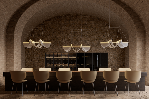 De lamp is uitgerust met LED-verlichting, verwerkt in twee slanke glazen buizen, wat een efficiënt energieverbruik garandeert. De innovatieve constructie creëert een spel van licht en schaduw, waardoor de Drape Light geschikt is voor uiteenlopende toepassingen, van sfeerverlichting in woonkamers tot functionele verlichting in commerciële settings.