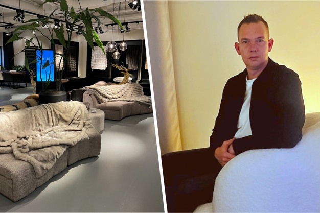 Eigenaar Edo Riedeman, met links een kijkje in de showroom op De Woonindustrie.