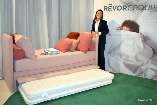 Veruit de meeste van de 109 exposanten kwamen uit België, waaronder Revor Group. Isabelle Malysse poseert bij de nieuwe bedbox Ami, ideaal voor kleinbehuisden.
