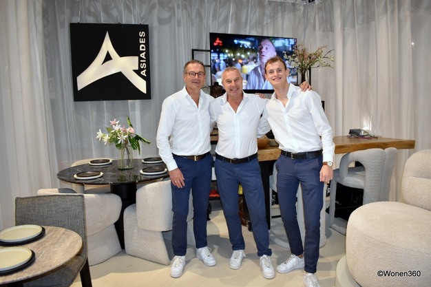 "België is een markt waar we meer kunnen doen", vertelde Jan-Wout Hulstein van Asiades, op de foto in het midden met Peter de Lijster en Sem Renders (rechts). "Het is een groot pluspunt dat je op Design Nation niets hoeft op te bouwen. Je zet je meubels neer en klaar is Kees."