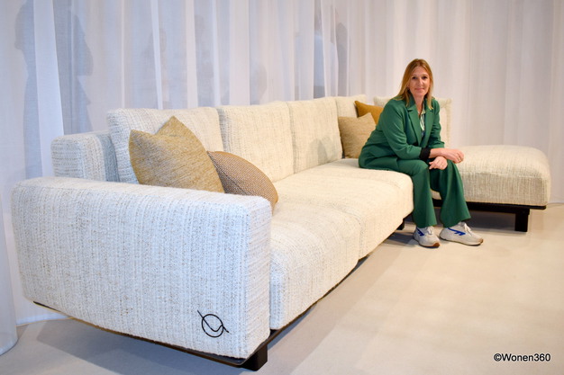 Founder Nele Vlaeminck van SOFAR, een concept dat perfect aansluit bij de circulaire economie. Het onderscheidt zich door een volledig recyclebaar aluminium frame en kussens van één materiaalsoort, zonder het gebruik van lijm of nietjes, waardoor reparatie en recycling eenvoudiger worden. Bovendien wordt elk SOFAR meubelstuk in België geproduceerd en voorzien van een digitaal paspoort met onderhouds- en recyclagetips, waarmee het merk een voorsprong neemt op de circulaire toekomst van de meubelindustrie.
