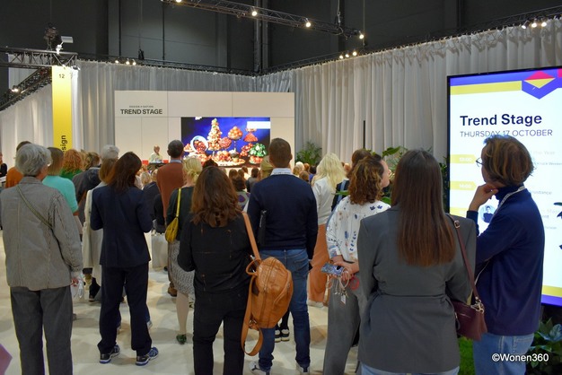 Daniëlle de Lepper (2e van links) van Dôme Deco staat bezoekers te woord. De collectie van het Belgische interieurlabel viel bij een groot publiek in de smaak.