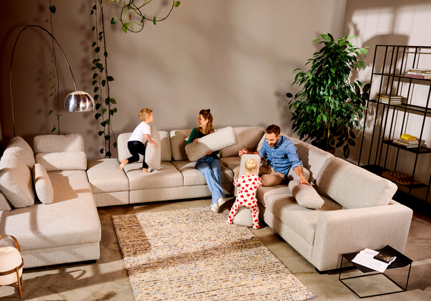 Belform brengt een reeks nieuwe banken met handige functies op maat van jonge gezinnen, zoals een elektrisch uitschuifbare zit. "Er worden ook drie nieuwe fauteuilconcepten aan de collectie toegevoegd", legt Bart Veenhuizen uit. "Ze zijn verkrijgbaar als rocking chair of met een relax (manueel of elektrisch)."
