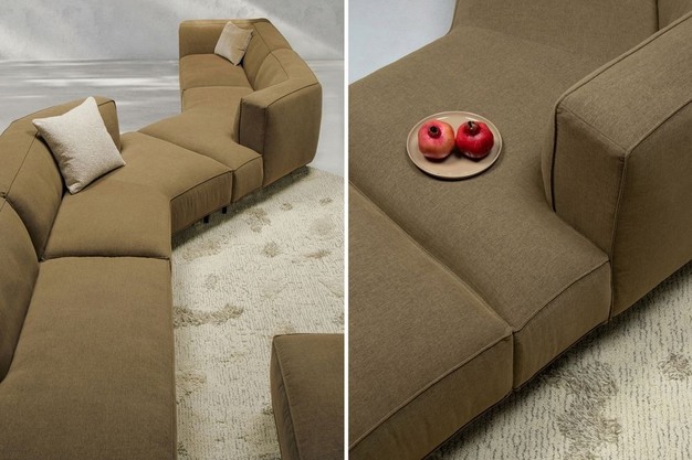 Gelderland: "Of je nu kiest voor een klassieke rechte bank, een hoekbank, of een speelse modulaire bank, de 6400 past zich aan ieders woonwensen aan. Door de elementen in verschillende kijkrichtingen aan elkaar te schakelen ontstaat een dynamische opstelling. Een breed scala aan stoffen, kleuren en poten maakt de 6400 bank toepasbaar in ieder interieur."