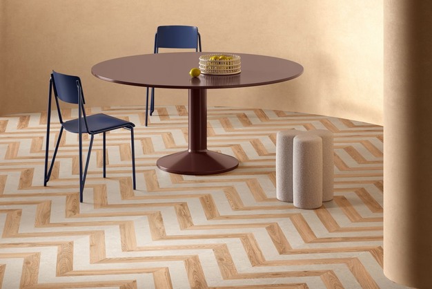 "Of je nu kiest voor serene minimalistische interieurs of juist voor gedurfde, eclectische ontwerpen, Moods biedt je eindeloze mogelijkheden om een vloer te creëren die echt bij jou past. Op zoek naar iets anders dan een visgraatmotief? Met de Moods-collectie zijn de mogelijkheden oneindig. Van een strakke betegelde look, een speelse geometrische golf tot een funky kubusontwerp", aldus Moduleo.