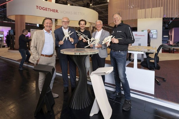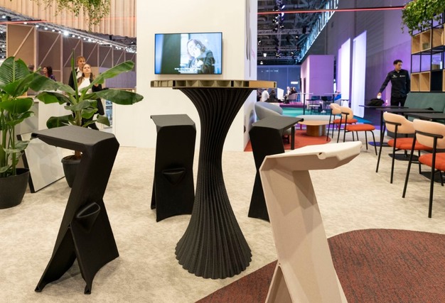 Op Orgatec '24 in Keulen toonden beide partners in circulariteit trots het eerste resultaat van deze samenwerking: een op maat ontworpen en 3D-geprinte tafelpoot in combinatie met een Greengridz-tafelblad. Die revolutionaire circulaire bureau- en tafelbladen van Triboo hebben een gepatenteerd GRID-systeem als kern. Dat maakt de panelen niet alleen veel lichter, maar ook veel sterker en stijver dan eender welk massief paneel dat op dit moment op de markt verkrijgbaar is.