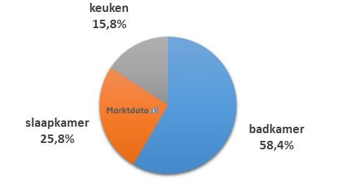 Ruim 58 procent van het zoekvolume met type ruimte aanduiding heeft betrekking op de badkamer. Op de tweede plaats staat de slaapkamer met een aandeel van ruim 25 procent in het zoekvolume. De nummer drie is de keuken, die 15,8 procent van het zoekvolume vertegenwoordigt.