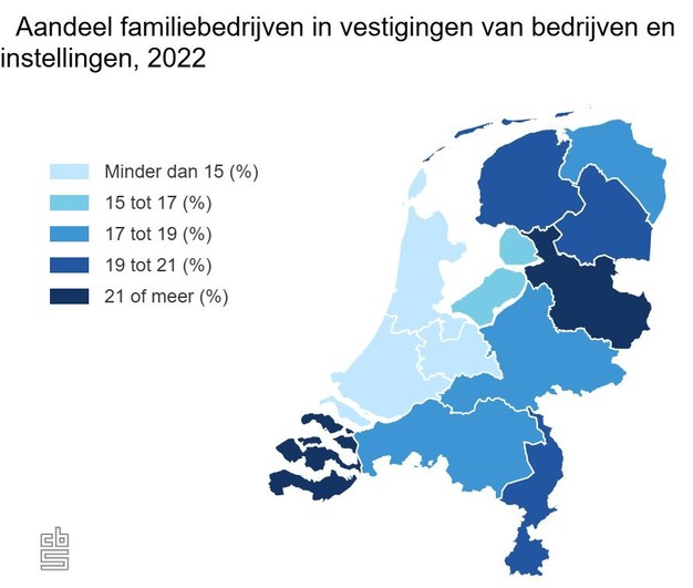 Van alle ruim 2 miljoen bedrijven in 2022 was 14 procent een familiebedrijf met meer dan 1 werkzaam persoon. Samen hadden zij ruim 378 duizend vestigingen. Vooral in de provincies Zeeland (23 procent) en Overijssel (22 procent) is het aandeel vestigingen van familiebedrijven relatief groot. In Noord-Holland was dit aandeel het kleinst.