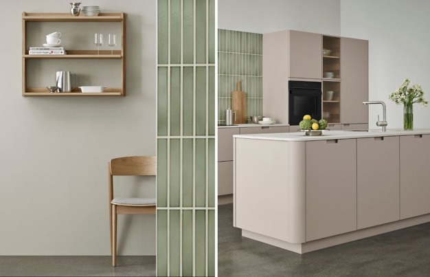 Kvik bracht dit jaar een spiksplinternieuw design uit: Evento. Beschikbaar in de kleuren arizona beige en white. "Ook in dit design staan organische vormen centraal", licht Johnsen toe. "Door dit te combineren met warme tinten en geïntegreerde handgrepen, krijg je een visueel rustgevende en tactiele ervaring." Speciaal voor Evento lanceerde Kvik een makkelijk aanpasbaar wandpaneel. "Klanten kunnen zelf de achterplaat in de geïntegreerde hangreep vervangen voor een nieuwe kleur, zoals beige of apricot. Zo kun je de keuken eenvoudig aanpassen naar jouw behoeftes op dat moment."