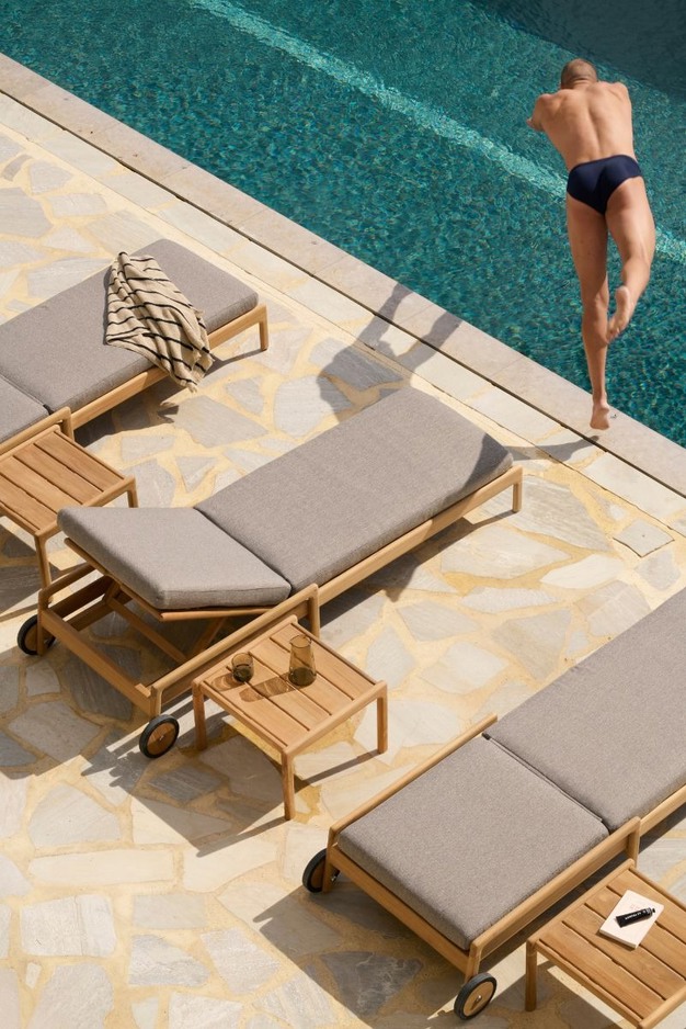 Ethnicraft's nieuwe outdoorcollectie is zorgvuldig opgebouwd rond materialen die duurzaamheid en authenticiteit weerspiegelen. Gerecycled teakhout, afkomstig van onbruikbare onderdelen uit het atelier in Indonesië, wordt lokaal herwerkt en speelt een hoofdrol in vele ontwerpen. De rijke patina en unieke texturen van soms eeuwenoud hout zorgen voor een natuurlijke charme, terwijl het hergebruik bijdraagt aan een circulaire toekomst. Handbewerkt beton met een unieke beschermende coating en subtiele, geweven details, zoals duurzame multifilamentkoorden, brengen verfijning en moderne accenten toe aan het buitenmeubilair dat door de materiaalkeuze bestand is tegen vervaging, chloor en schimmel.