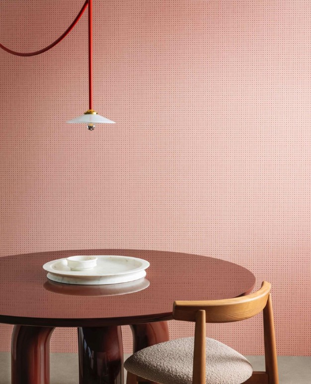 De gekleurde wandbekleding wordt verrijkt met een speels stippenpatroon, geïnspireerd op een ontwerp van Le Corbusier zelf. Het originele ontwerp dateert uit 1931, maar het ritmische patroon en de vlekkeloze kleurentheorie stralen even fel in de eenentwintigste eeuw. In het schijnbaar minimalistische design worden de stipjes aangebracht met een high-gloss reliëfinkt. Daardoor ontstaat er een subtiele weerkaatsing, waardoor de muurbekleding subtiel met licht speelt; een knipoog naar het werk van Le Corbusier in zijn tijd.