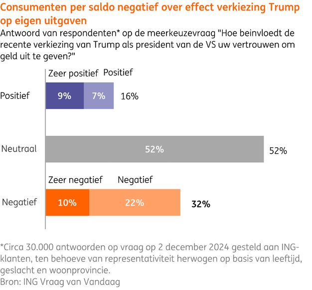 Naast prijzen noemen consumenten ook geopolitieke ontwikkelingen, zoals de herverkiezing van Donald Trump, als reden voor voorzichtigheid. Hoewel 52% van de respondenten aangeeft hier weinig last van te hebben, ziet 7% dit als hoofdreden voor minder uitgaven.