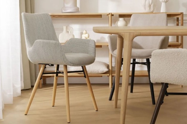 De zoektocht naar de juiste eetkamerstoel begint met bepalen wat je nodig hebt. Meet je eettafel op zodat je een idee hebt van de maat die je nodig hebt en hoeveel zitplaatsen er moeten komen. Op websites als Gewoonstijl kun je inspiratie opdoen en gericht zoeken door gebruik te maken van verschillende filters. Wil je bijvoorbeeld dat de stoel wel of geen armleuningen heeft, wel of niet draaibaar is of heb je al een specifieke kleur op het oog? Dan kun je daar alvast allemaal op selecteren. Kijk goed naar de maat en ga uit van ongeveer 70 centimeter per stoel, zodat je per persoon voldoende bewegingsvrijheid overhoudt. Bedenk dat een grote, robuuste eettafel ook om stoelen vraagt die een beetje body hebben, zodat ze niet wegvallen en dat een druk blad of onderstel mooi in toom wordt gehouden met eetkamerstoelen in een minimalistische vorm.