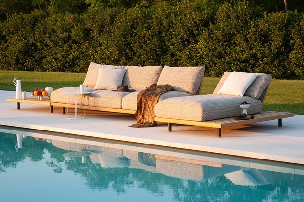Het Italiaanse outdoor merk RODA heeft onlangs een spectaculaire nieuwe collectie uitgebracht. Deze Philia collectie buitenbanken is ontworpen door Rodolfo Dordoni. Deze ontwerper is jarenlang artistiek directeur van RODA geweest. De sofa met als hoofdmateriaal teak is samen te stellen uit 13 verschillende modules waardoor royale afmetingen mogelijk zijn.